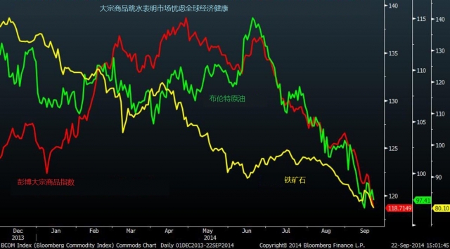 今年以來覆蓋22種基礎商品的彭博大宗商品指數下跌5.6%,刷新五年新低;布倫特原油下跌12%,在上周創下兩年新低;交付青島港的鐵礦石價格今年以來下跌41%,跌至2009年以來最低。