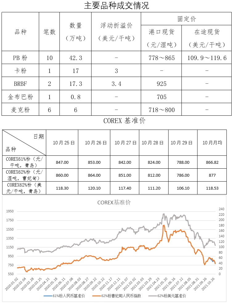10月25日-10月29日成交30筆共100.6萬噸,其中在途5筆76萬噸,港口25筆24.6萬
