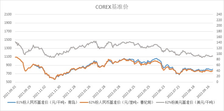 9月19日~9月23日成交105筆共213.14萬噸,其中在途8筆共101.5萬噸,港口97筆共111.64萬噸。主要成交品種包括:PB粉28筆共69.87萬噸,金布巴混合粉17筆共20.49萬噸,麥克粉13筆共24.71萬噸,FMG超特粉3筆共4.1萬噸,FMG混合粉4筆共4.02萬噸, BRBF 1筆共17萬噸,卡拉加斯粉2筆共2萬噸。