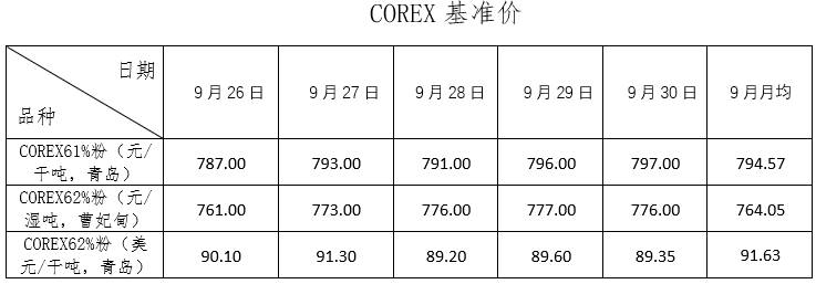 9月26日~9月30日成交69筆共151.48萬(wàn)噸,其中在途8筆共81萬(wàn)噸,港口61筆共70.48萬(wàn)噸。主要成交品種包括:金布巴混合粉13筆共50.5萬(wàn)噸,PB粉12筆共29.72萬(wàn)噸,麥克粉8筆共14.87萬(wàn)噸,BRBF 3筆共4.6萬(wàn)噸, FMG混合粉1筆共1萬(wàn)噸,F(xiàn)MG超特粉1筆共0.6萬(wàn)噸。