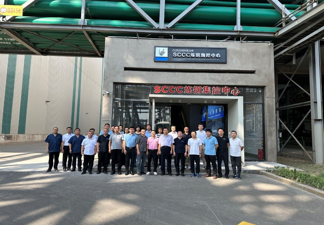 全體黨員到河北天柱鋼鐵智慧工業園參觀交流,天柱鋼鐵總經理劉海春帶領大家實地參觀了SCCC煉鋼集控中心,介紹了公司的發展歷程及產品概況;王穎生介紹了中鋼協市場部和北鐵中心基本情況及所提供的服務。